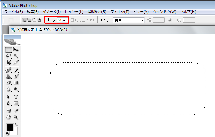 または、矩形選択の時でオプション「ぼかし」で設定しておくと