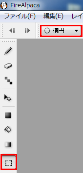 「選択ツール」をクリックした後、「楕円」をクリックします。