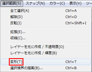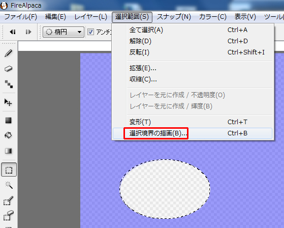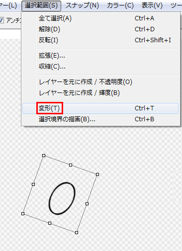 楕円を斜めにした後に、再度「選択範囲」→「変形」をクリックし完了です。