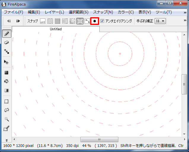 初期化ボタンである「●」をクリックすると、スナップをまた動かすことが出来ます。