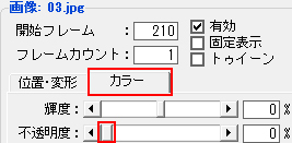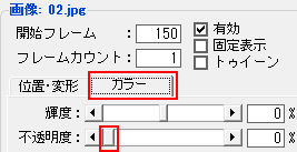 「カラー」をクリックした後、「不透明度」を「0%」にします。