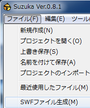 作成したものをFlash形式で保存するため「ファイル」 - 「SWFファイル生成」をクリックし
