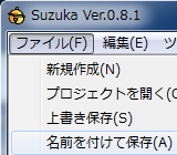 念のためプロジェクトファイルを保存するため「ファイル」 - 「名前を付けて保存」をクリックし