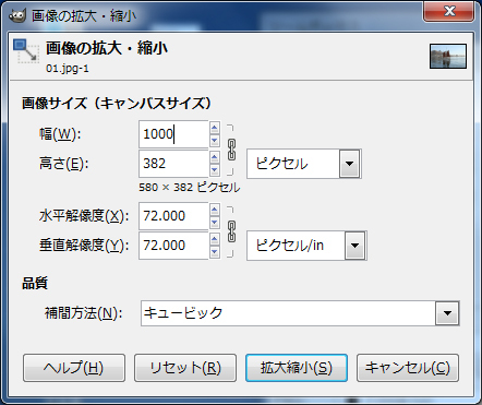 画像加工フリーソフト GIMPで画像の拡大・縮小とキャンバスサイズの変更