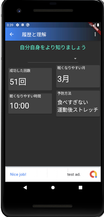 アプリの説明:病気や体調不良の時、何をすれば治るかを表示するアプリです。