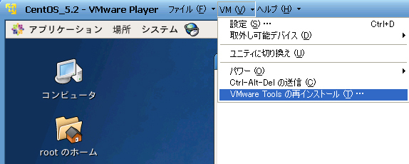 VM Playerのメニューバーから「VM」-「VMWare Toolsのインストール」を