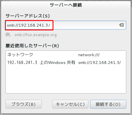 ※「サーバーへ接続」が無い場合は「ネットワークを表示」をクリックします。