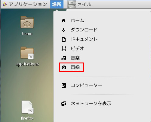 「usr」→「share」→「applications」をクリックし、「端末」や「Firefox」など