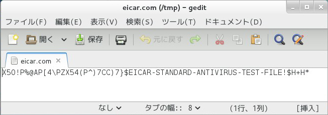 /tmpディレクトリのeicar.comを開いたところ。 開くことが出来ました。