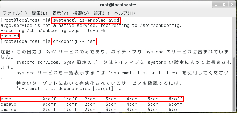 ※avgcfgctlの使用方法は「man avgcfgctl」に掲載されています。