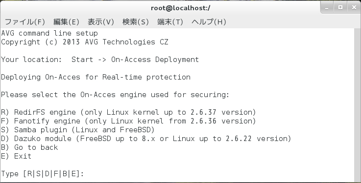 対話形式で設定を実施する場合はavgsetupコマンドから設定していきます。