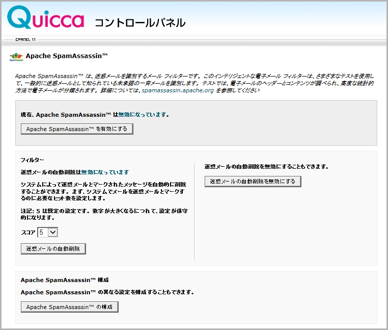 ※あまり関連性は有りませんが、レンタルサーバ「クイッカ」 のスパムアサシン設定項目に、 スパムアサシンについての分かりやすい説明が有りました。