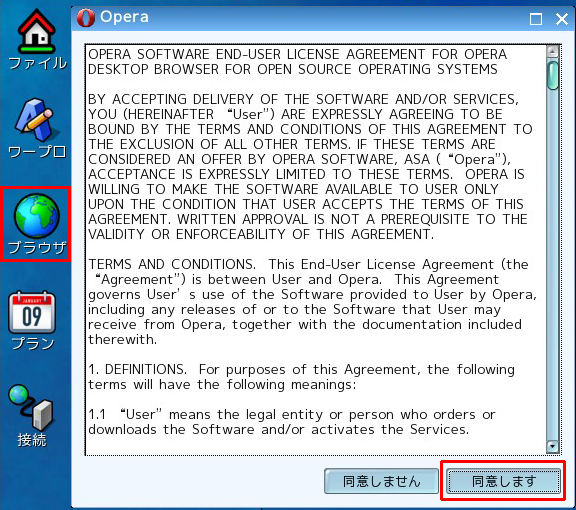PuppyLinuxのWEBブラウザを起動します。初回起動のため