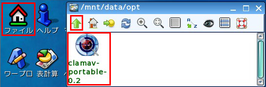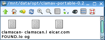 「/mnt/data/opt/clamav-portable-0.2/clamav/virus」ディレクトリが開きます。