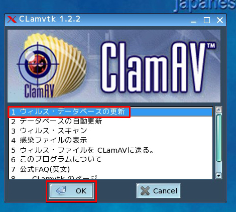 「1 ウィルス・データベースの更新」を選択し、「OK」をクリックします。