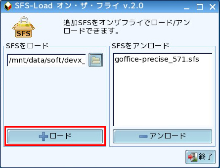 SFSファイルをロード(インストール)するポイントは、アンロードするまでは