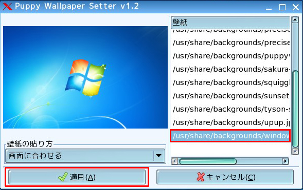 先ほどコピーした画像を選択し、「適用」をクリックします。