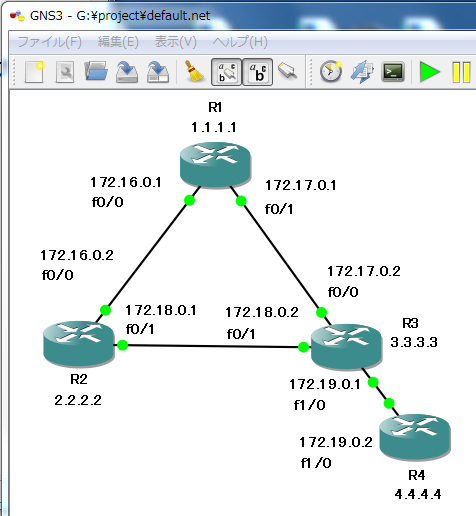GNS3(GUIでのciscoルータエミュレータ)の設定方法