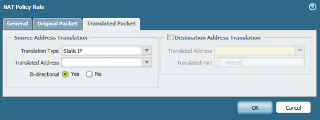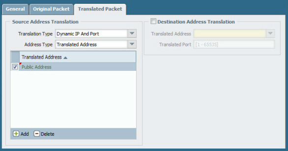 「変換済みパケット」はNAPTの場合は「ダイナミックIPおよびポート」を選択します。