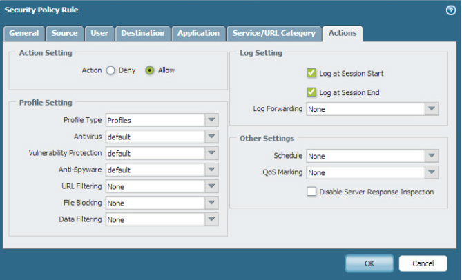 ルール名、Tag、送信元(ゾーン名、アドレス、ユーザー名、HIPプロファイル)、