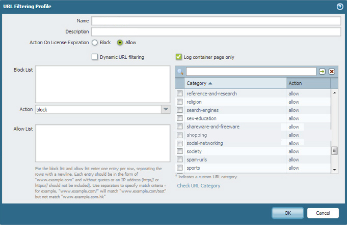URLフィルタリングのプロファイルを関連付けることが出来ます。
