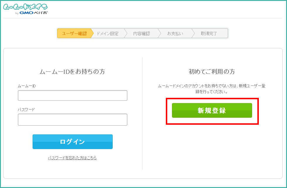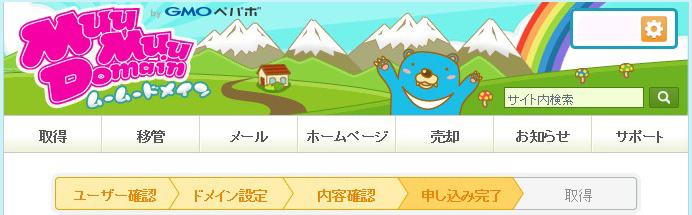 「ドメインのお申し込みを受け付けました」との表示を確認します。