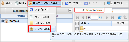 「表示アドレスへの操作」→「アクセス設定」をクリックします。