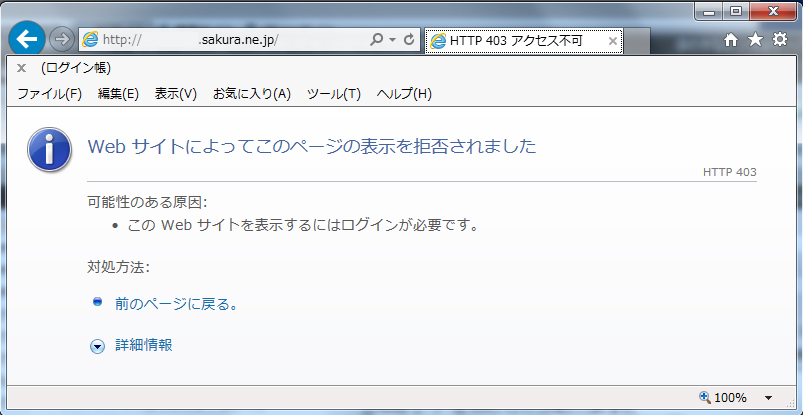 WEBブラウザで確認すると、正しくアクセス拒否されました。