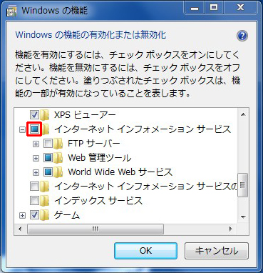 「インターネットインフォメーションサービス」を選択し「OK」をクリックし