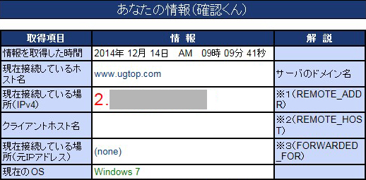 確認くんで、自分のグローバルIPアドレスを確認します。