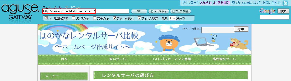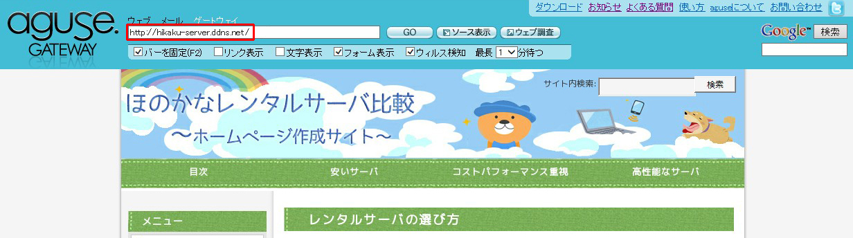 その後、他の回線から、設定したドメイン「http://jitaku.hikaku-server.com」