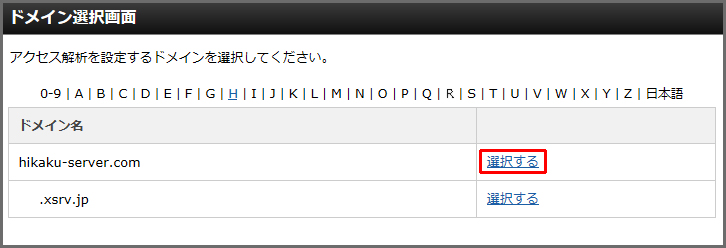 アクセス解析を設定するドメインを選択します。