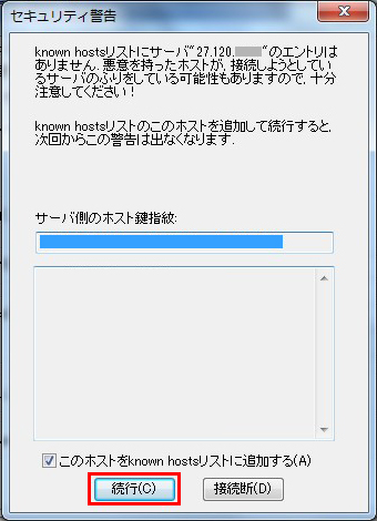 「続行」をクリックします。