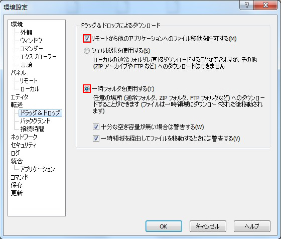 「リモートから他のアプリケーションへのファイル移動を許可する」、