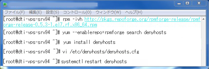 以下のようにDenyHostsをインストール、設定を行います。