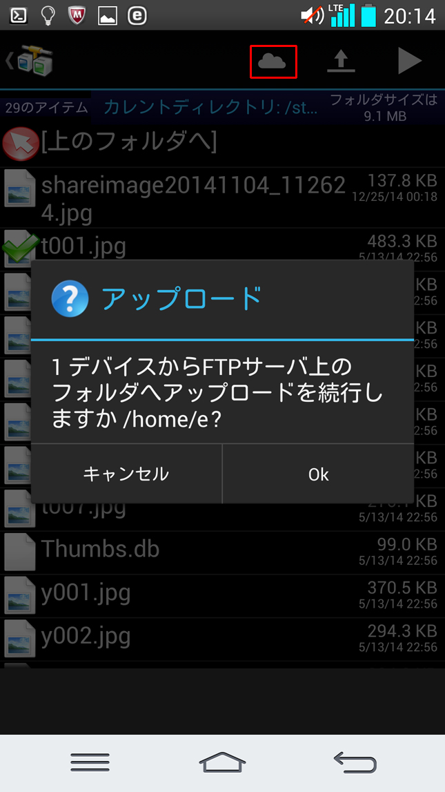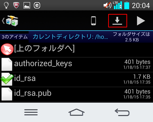 Android側にダウンロードするにはファイルをチェックし「↓」アイコンを押します。