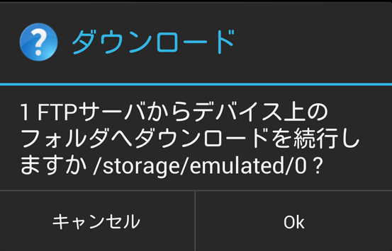 「Ok」を押します。Android端末のルートディレクトリにファイルが保存されました。