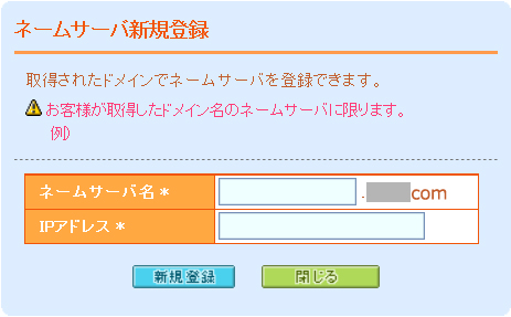 自分で作成したDNSサーバをレジストリに申請したい旨を