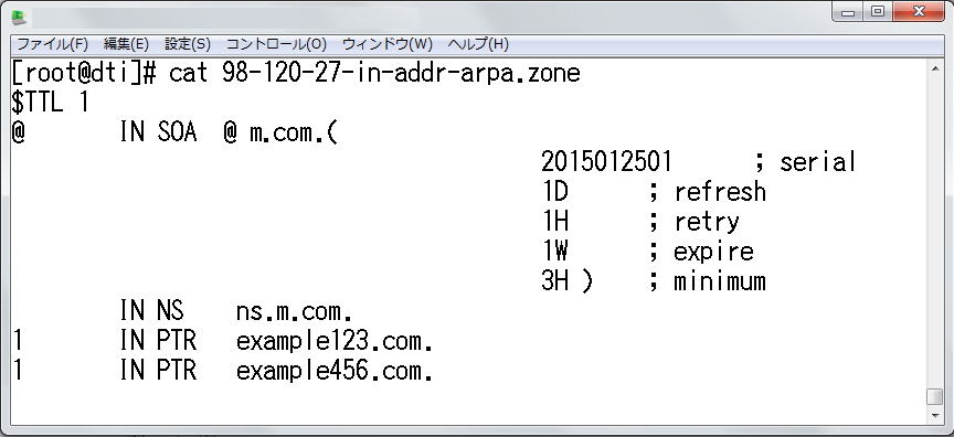 ※DNSサーバ内のゾーンファイルのTTLは1秒だと