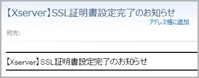 約2時間後に「【Xserver】SSL証明書設定完了のお知らせ」メールを