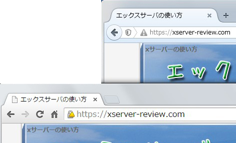 http://〜であるなど)は以下の警告マークになりました。