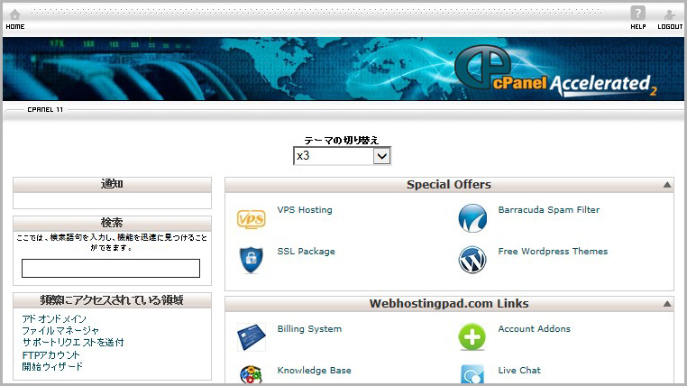 よく使われているレンタルサーバ用のコントロールパネルです。